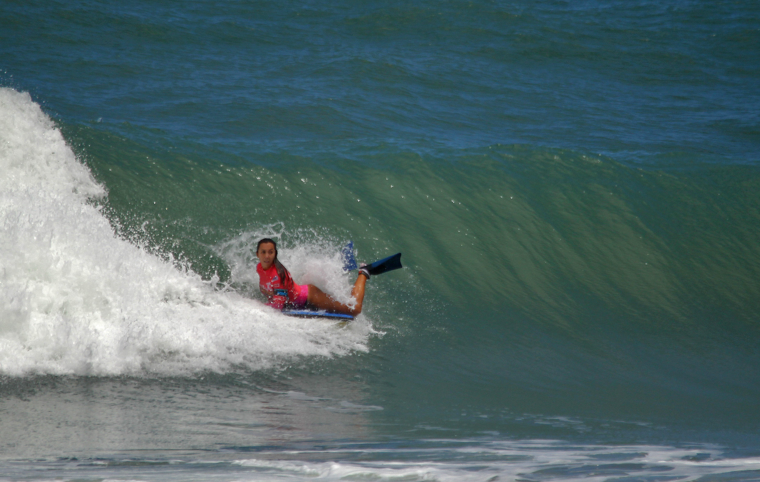 Após as disputas da terceira fase da Profissional Masculino, as meninas entraram na água para definir as semifinalistas do Skol apresenta Mahalo Bahia Bodyboarding Show. A cabeça de chave número 1 da etapa e líder do ranking brasileiro, Jéssica Becker, confirmou mais uma vez a boa fase. Campeã dos três últimos eventos que disputou – Mundial, Brasileiro e Carioca – a macaense passou pela cearense Patrícia Setubal.